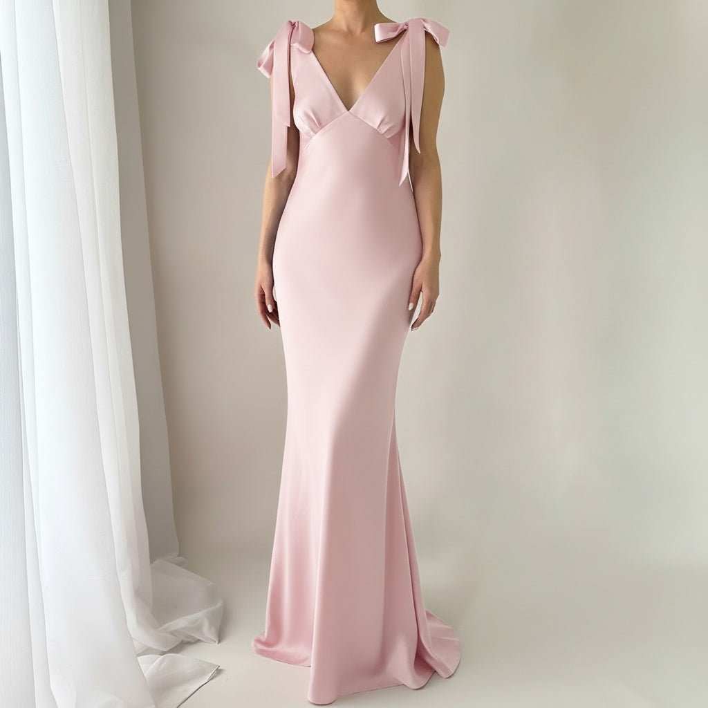 The Rosalie Deep V Gown With Shoulder Bows